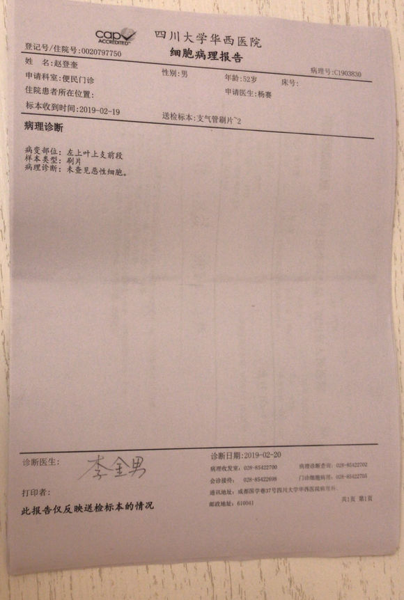 父亲刚刚查出非小细胞癌,父亲一直有咳嗽病几十年了